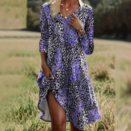 Spara idag 50%Kristina™ – Blommig V-ringad Klänning för Dam