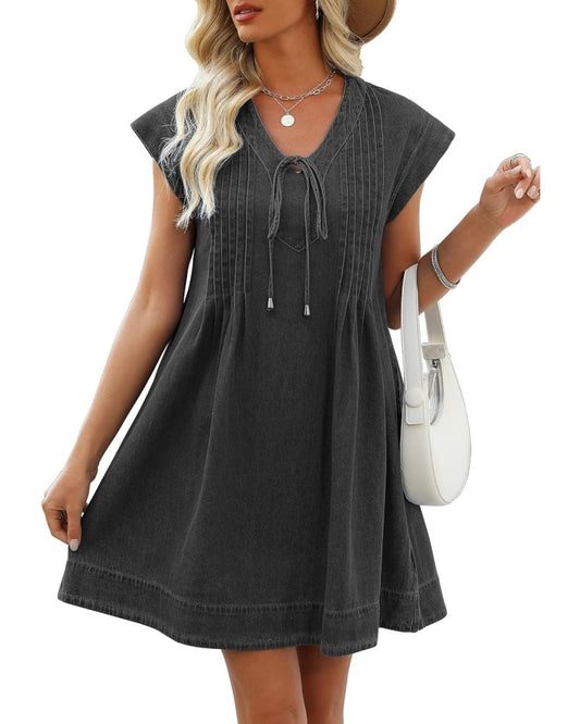 Spara idag 50%Nessa™ - Veckad Jeansklänning för Dam
