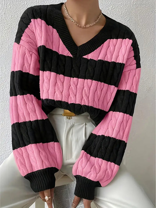 Spara idag 50%Tvåfärgad Stickad Tröja | Tillsammans mot Bröstcancer