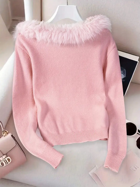 Spara idag 50%Axelbandslös Tröja Fuskpäls | Tillsammans mot Bröstcancer