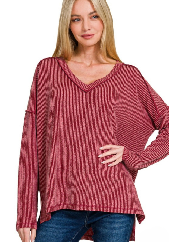 Mjuk och Bekväm Ribbad Långärmad Tröja