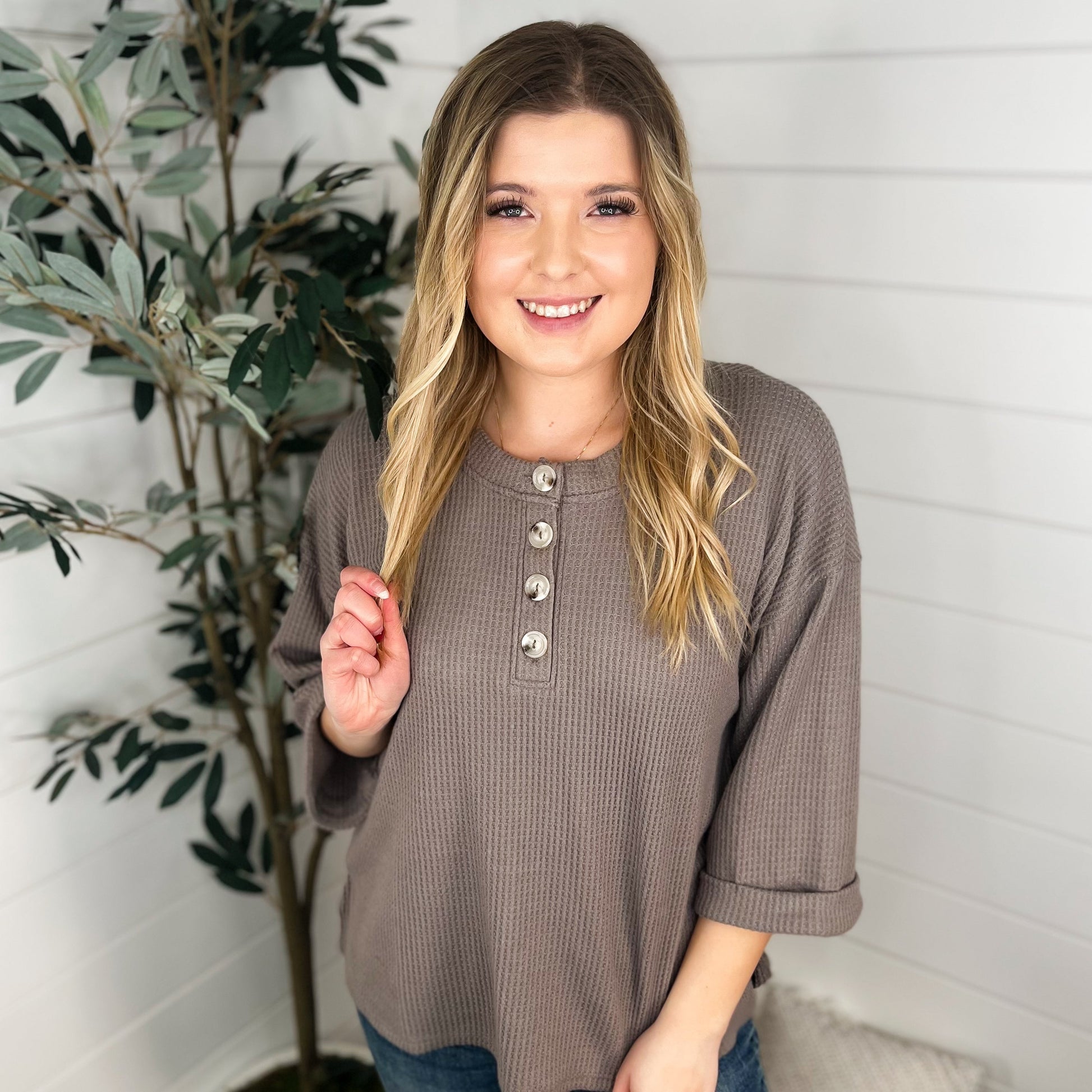 - Bekvämt tyg: Den mjuka waffle stickningen gör att du kan bära den hela dagen utan att kompromissa med komforten.