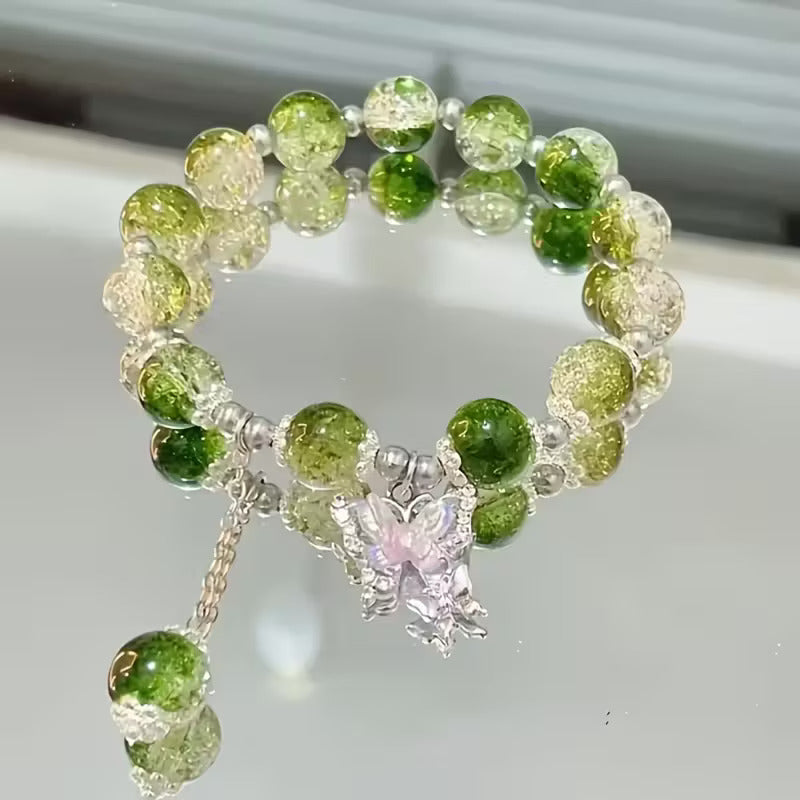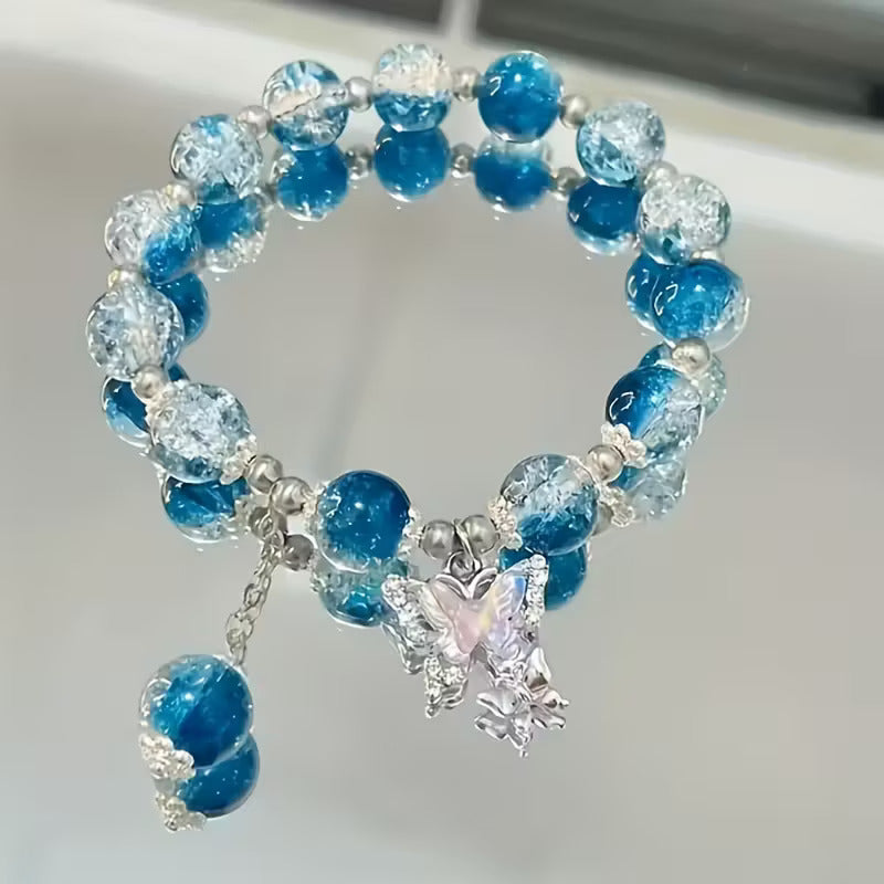 Elegant Pärlarmband med Fjärilsberlock | Tillsammans mot bröstcancer