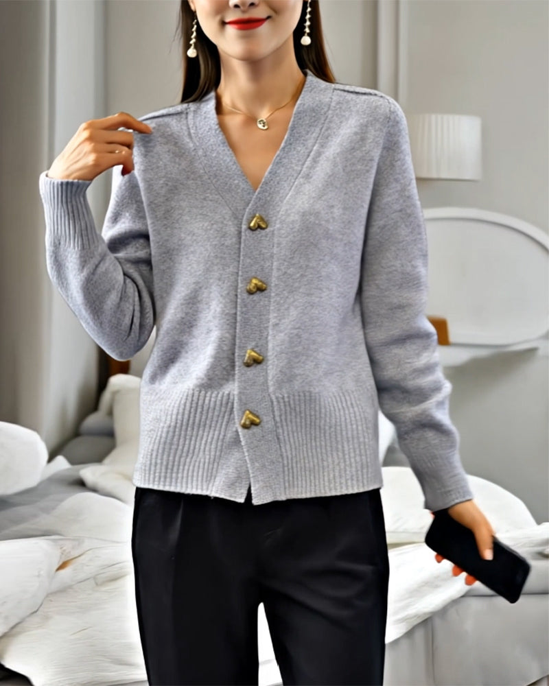 - V-ringad design med stilsäkra knappar