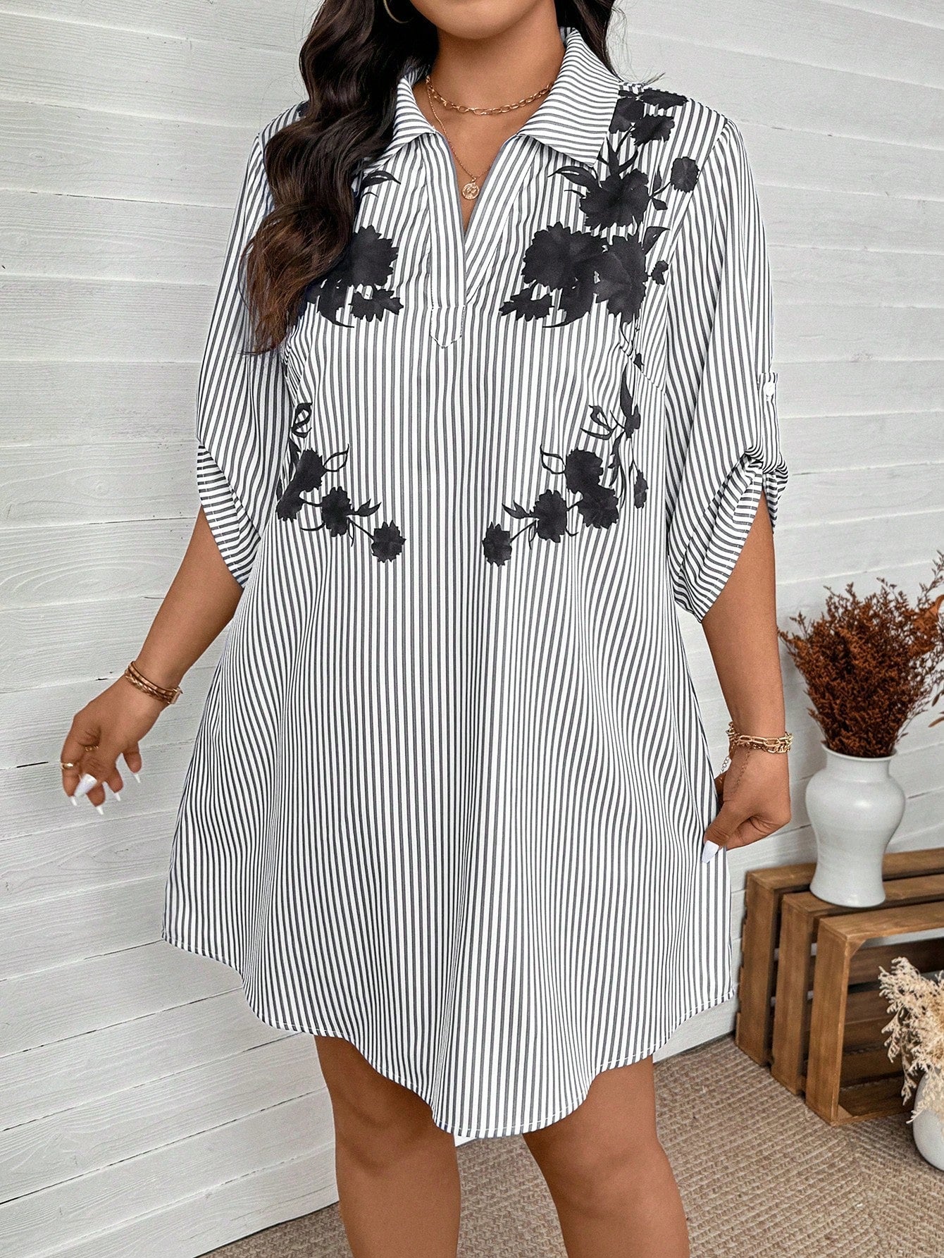 Du vill ha en klänning som är bekväm nog för vardagen men ändå har det lilla extra. Jennie™ kombinerar klassiska ränder med ett romantiskt blommönster – perfekt för dig som söker något både enkelt och unikt.