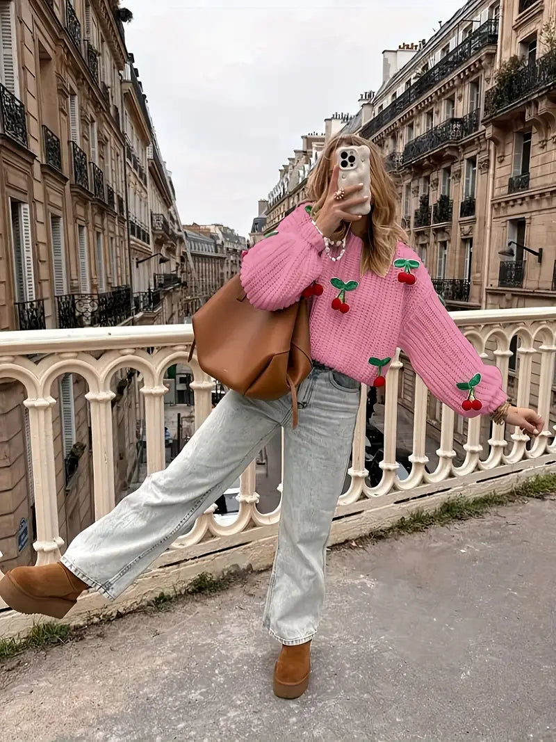Körsbärsmönstrad Tröja | Tillsammans mot Bröstcancer