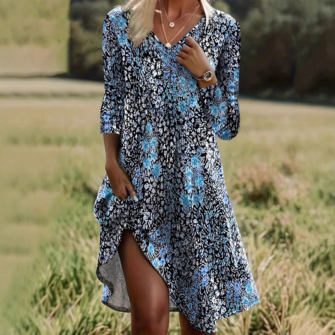 Kristina™ – Blommig V-ringad Klänning för Dam