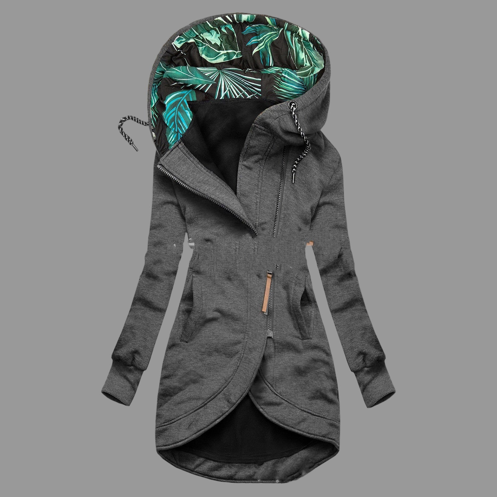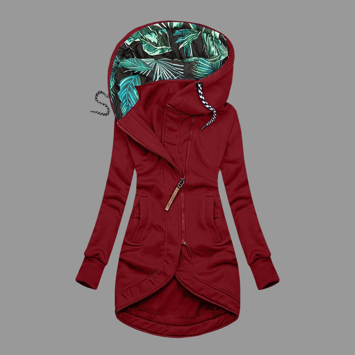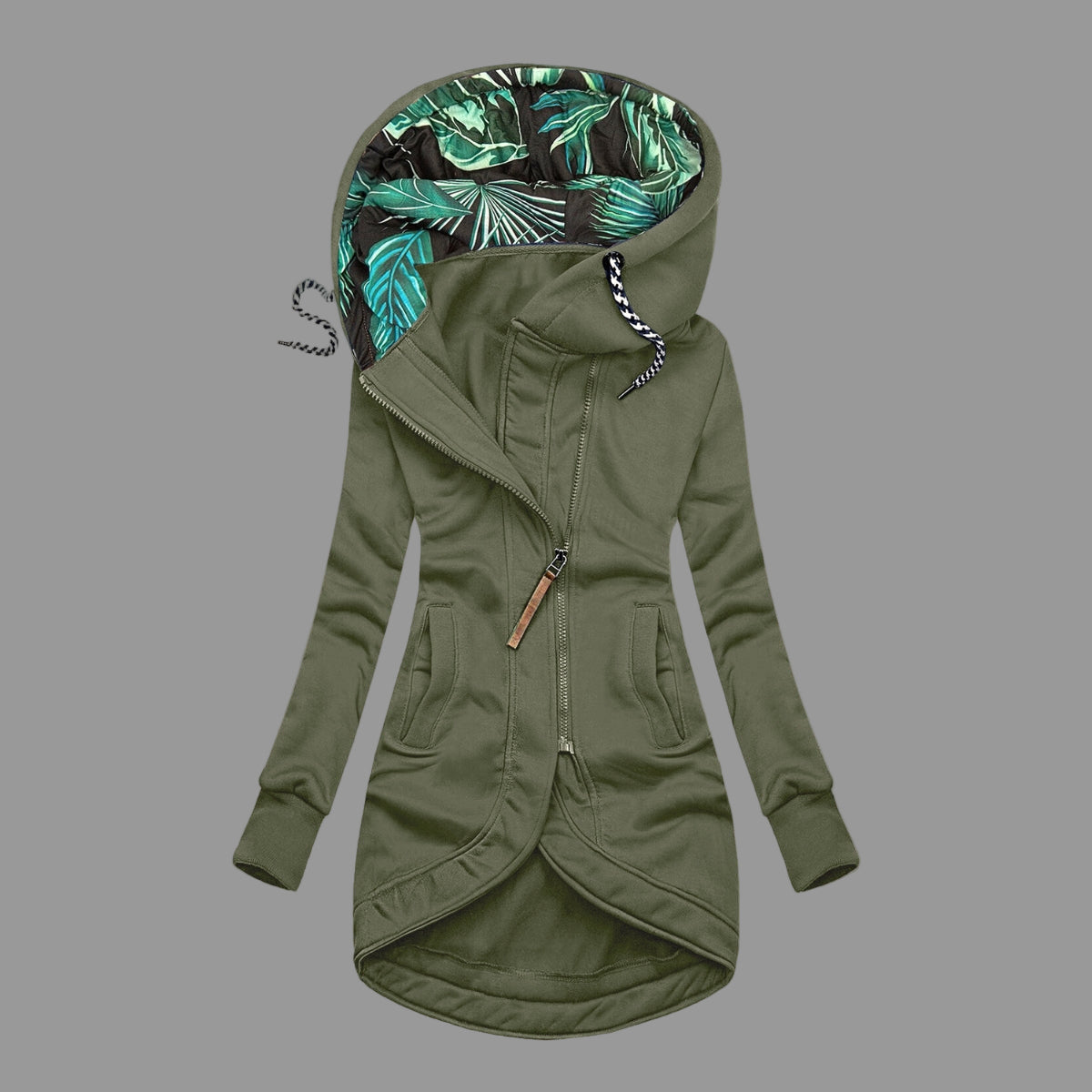 - Detaljer: Huva, dragkedja, eleganta sömmar