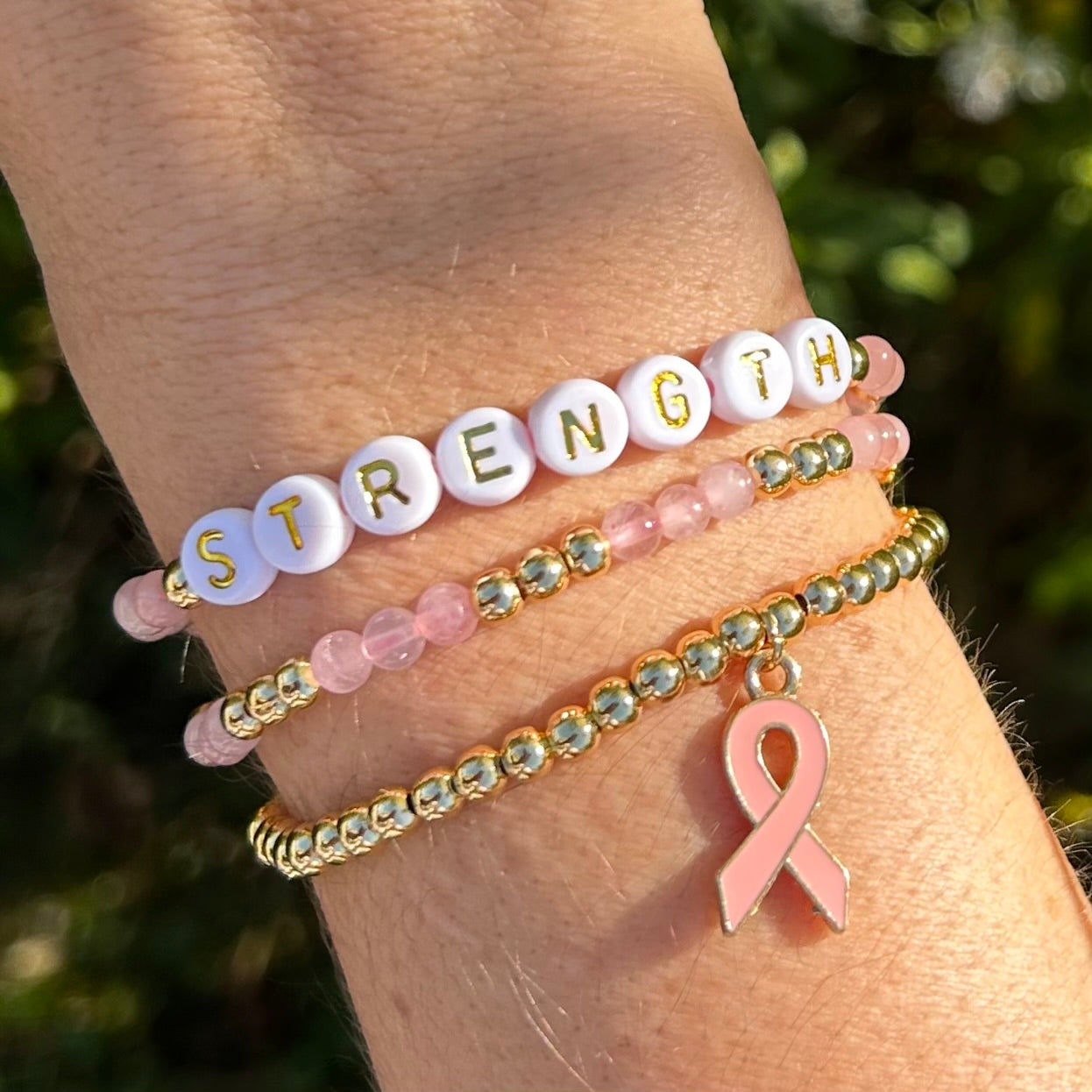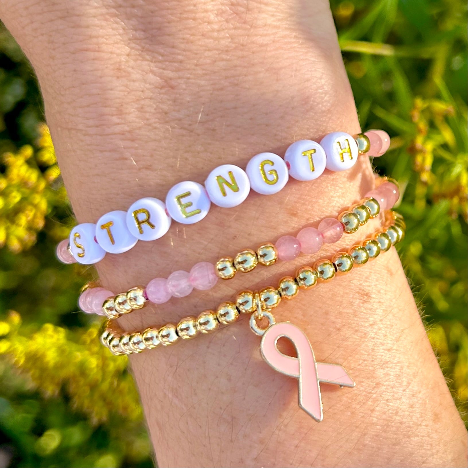🎗️ Elegant och meningsfullt: Mer än bara accessoarer – dessa armband symboliserar hopp, enhet och stöd för dem som berörts av bröstcancer.