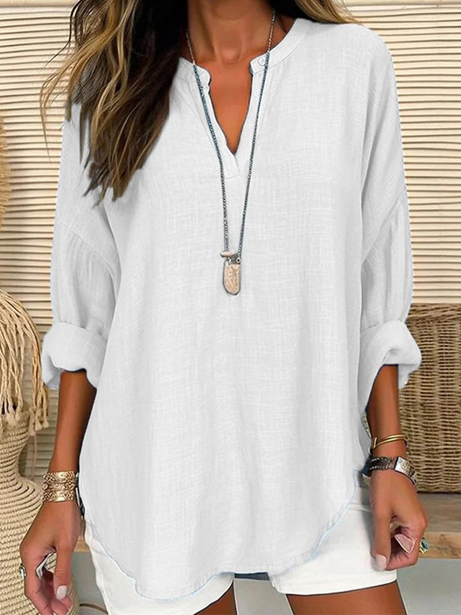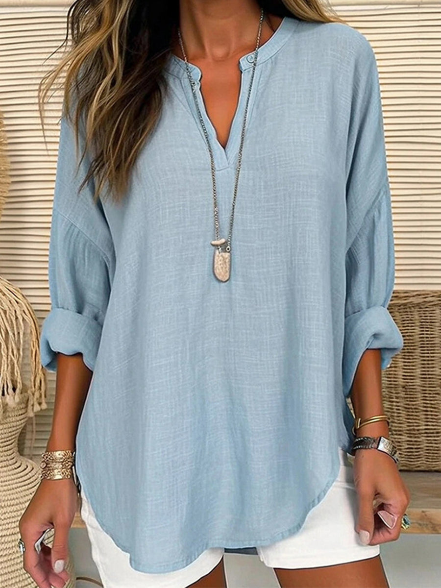 Quennie™ – V-ringad Linneskjorta för Dam