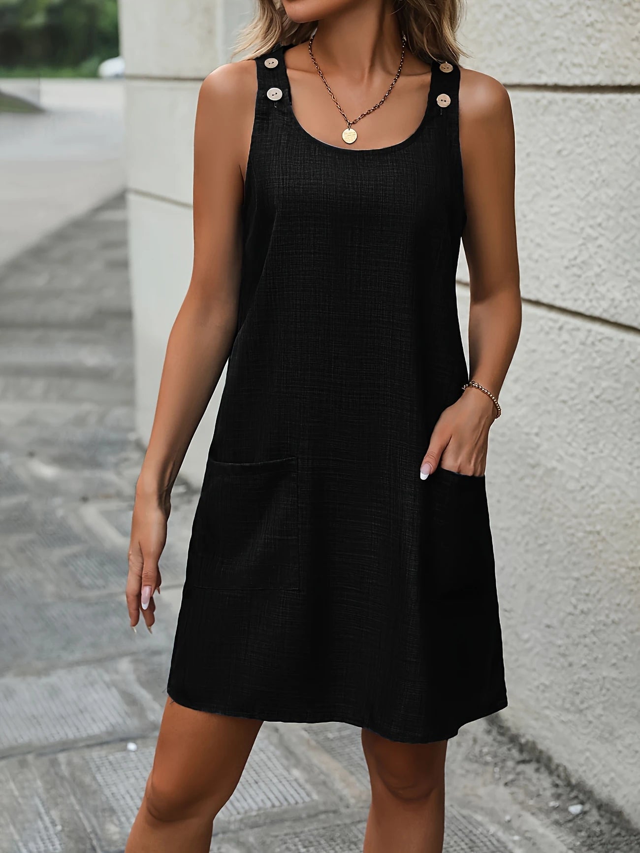 Du vill ha en sval och stilren klänning för varma dagar – något lätt att bära men ändå snyggt. Selma™ – en ärmlös denimklänning med fickor – ger dig komfort, funktionalitet och semesterkänsla i ett.