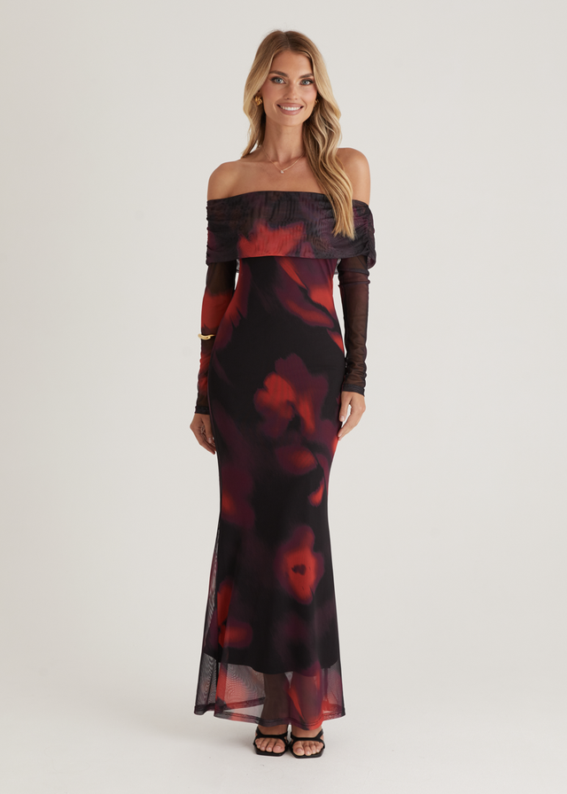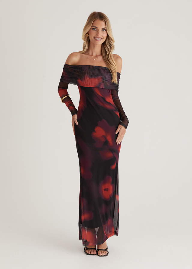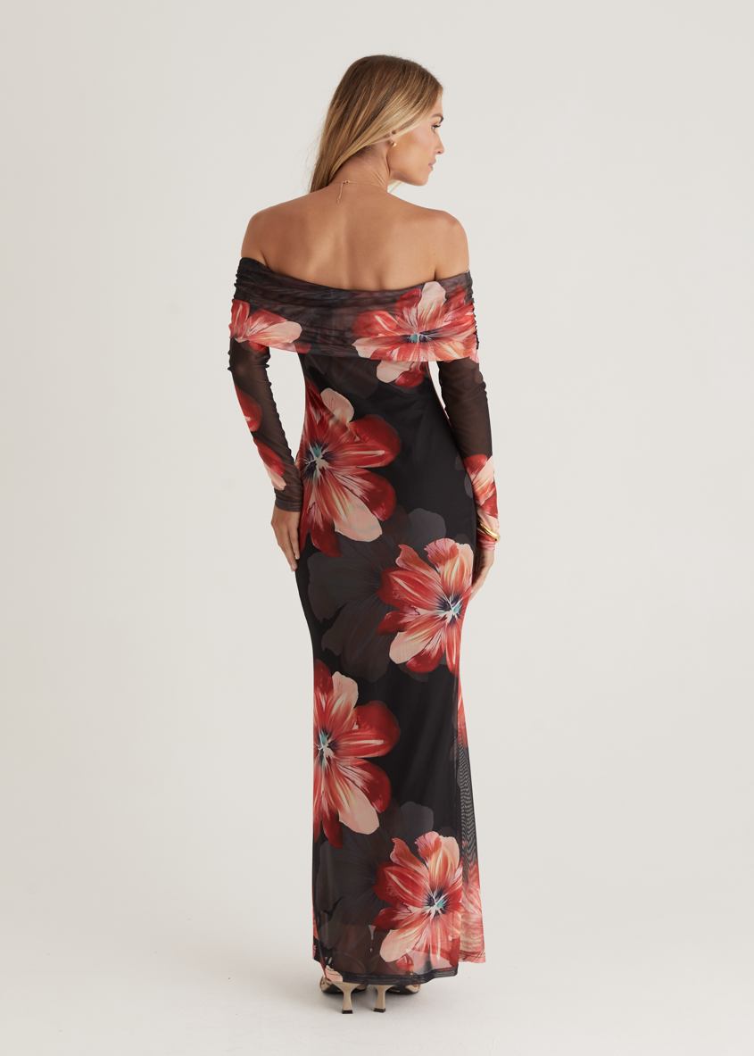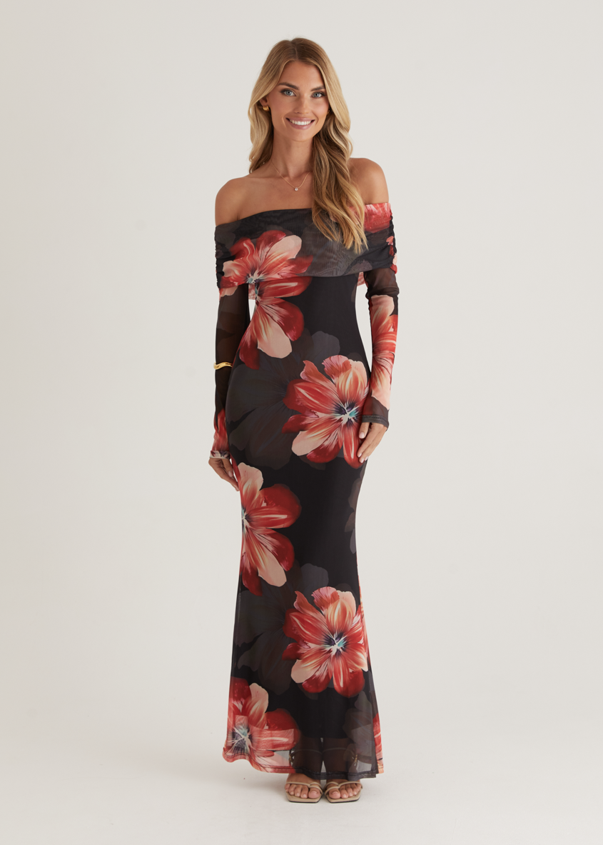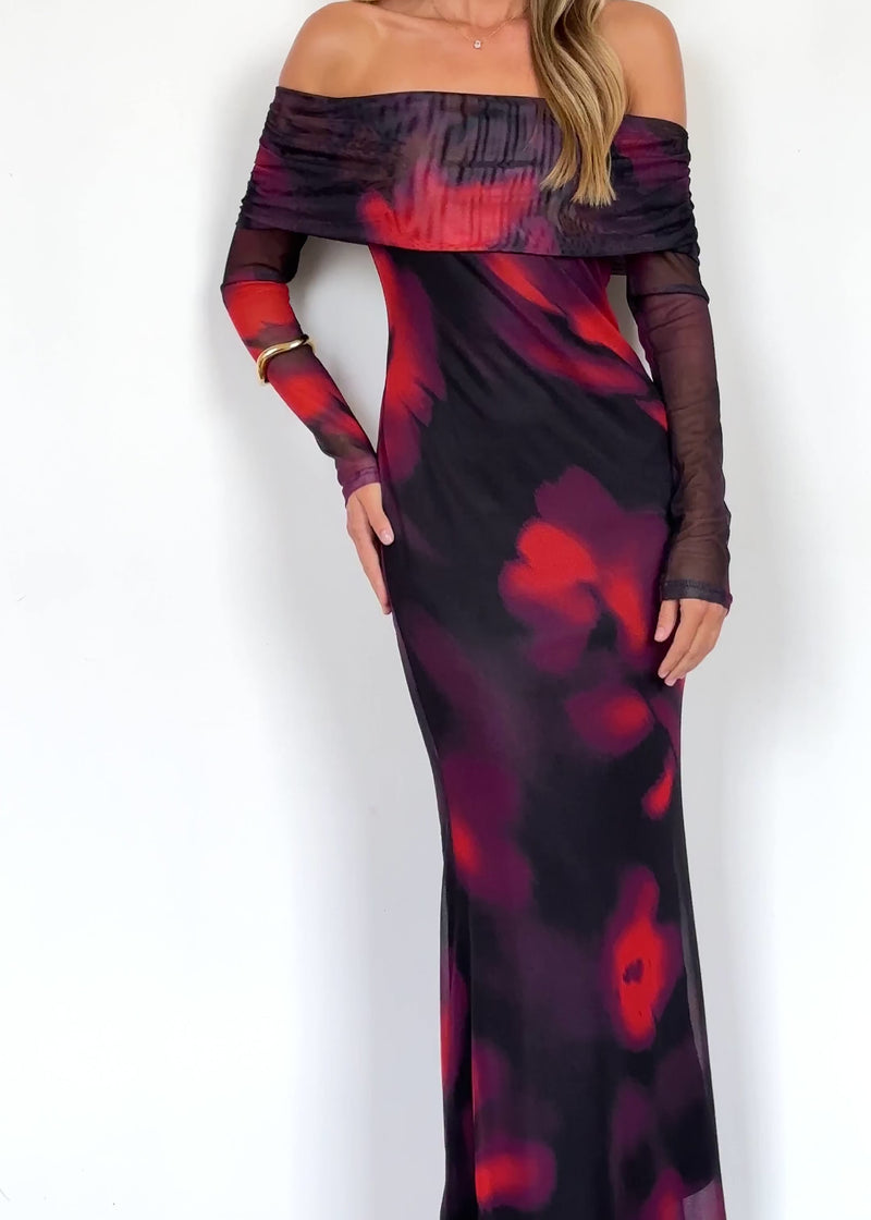 Du vill känna dig modig och feminin på dejter eller festkvällar. Denna axelbandslösa maxiklänning med dramatiskt nät och blommigt mönster ger dig en förförisk siluett som garanterat drar blickarna till sig.