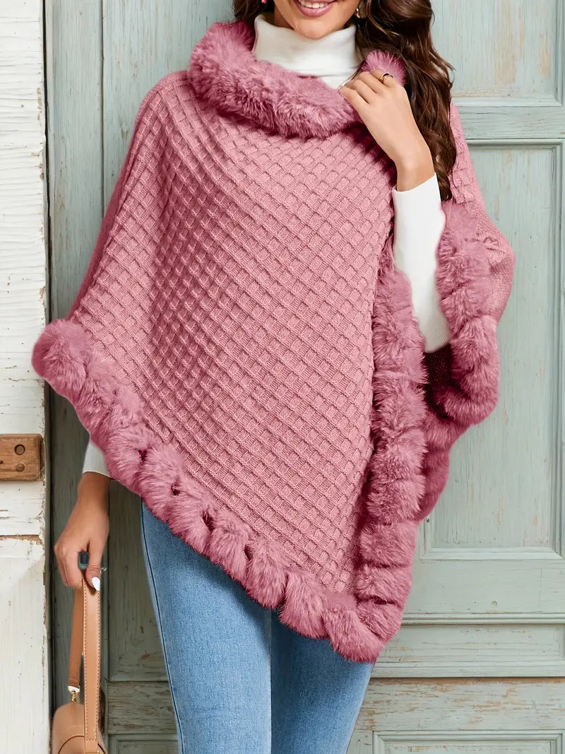 Pälskrage Våfflad Poncho | Tillsammans mot Bröstcancer